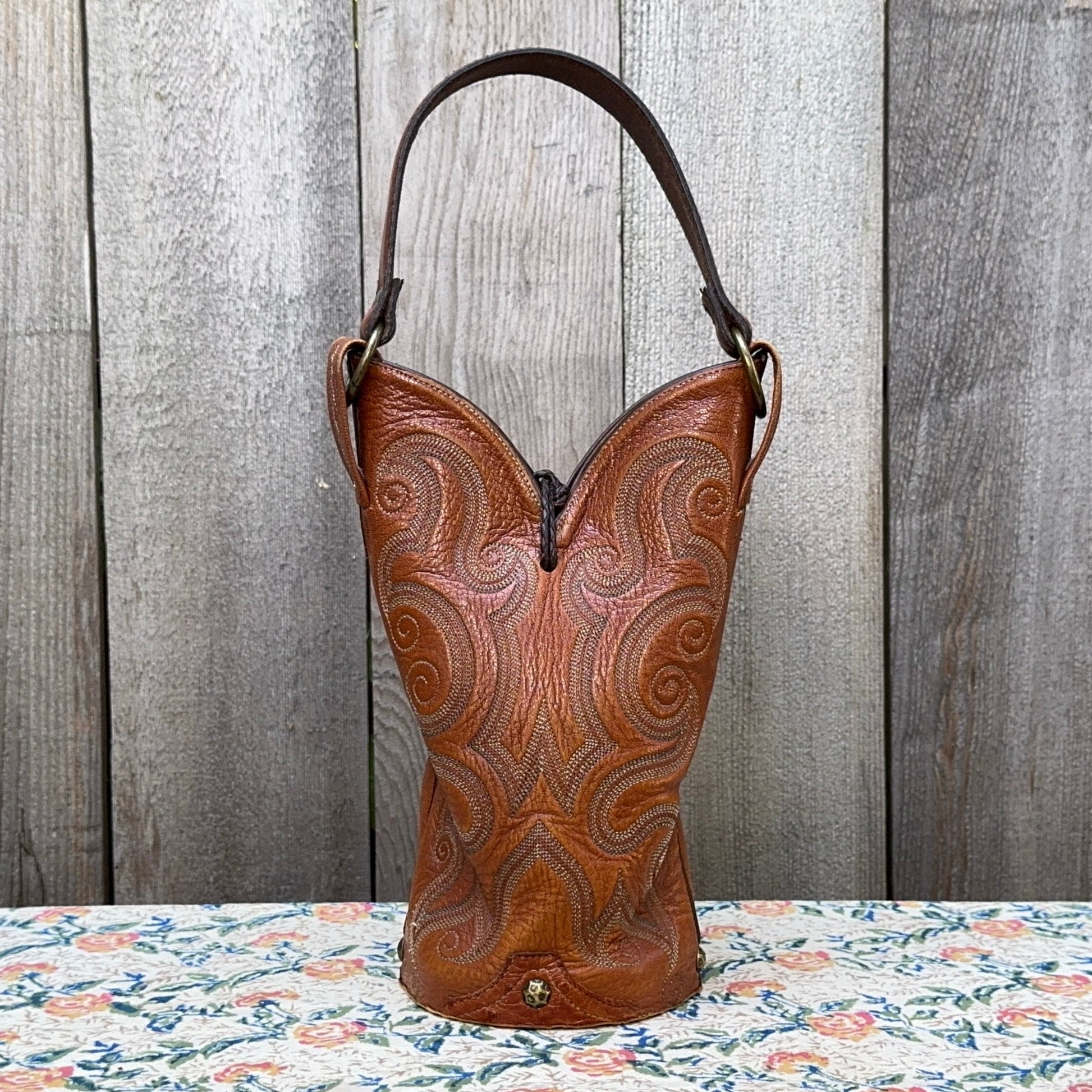 Is it a boot or a bag? It's both! Adjustable bolo tie with star medal secures the opening. Ye-hawww!